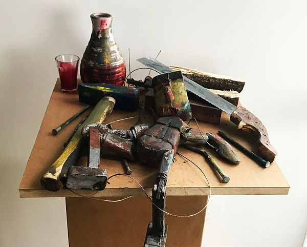 Woodwork. 2023. Cast lead and mixed media. 50 x 50 x 40 cm
